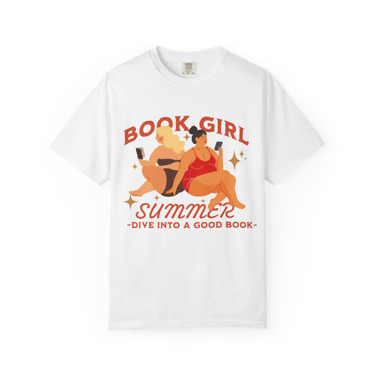 Book Girl Summer Tee: Green and Red– “Dive into a Good Book”